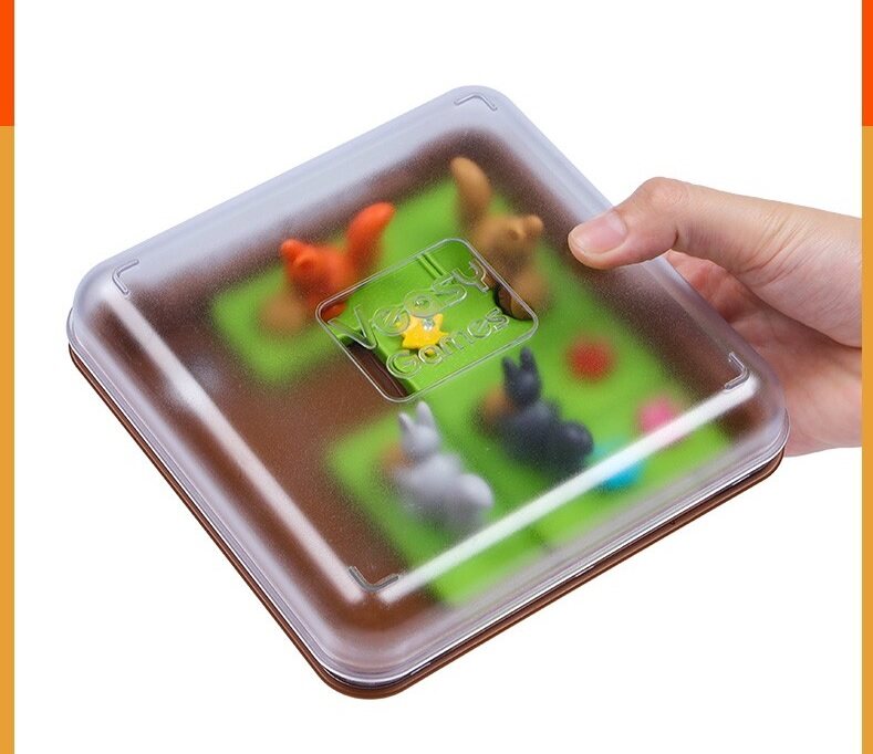 Squirrels Go Nuts! includes 60 challenges; solutions to these challenges draw from cognitive skills including planning and logic. It features a portable game board with a lid, making it perfect for travel. Squirrels Go Nuts! is unique logic game in that it offers the fun of actually dropping the acorns into holes. Earlier challenges are easier, but later challenges require 50+ moves to solve! But fear not: one of the neat things about Squirrels Go Nuts! is that players can re-trace their steps in the middle of a challenge without having to start over, simply pick up the board, replace the acorn, and continue!