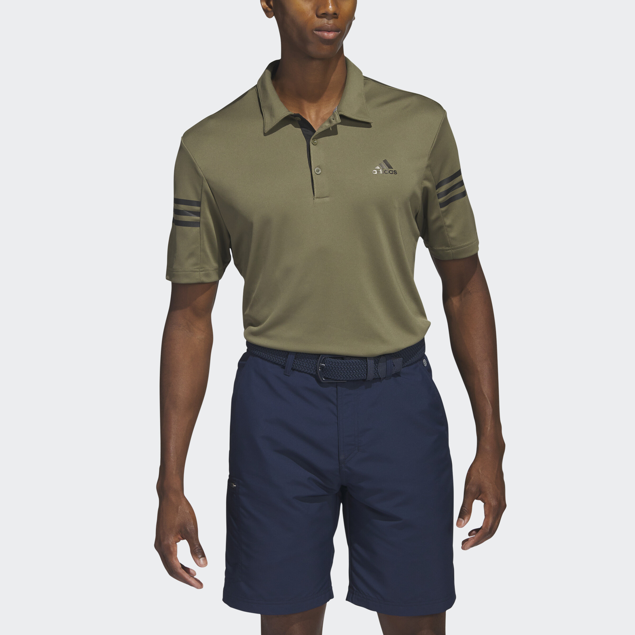 Tee off in 3-Stripes style in this golf polo shirt. The soft, lightweight fabric is made with AEROREADY to manage moisture and keep you dry. An adidas Badge of Sport on the chest completes the look. Made with 100% recycled materials, this product represents just one of our solutions to help end plastic waste.